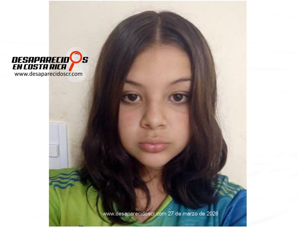 La Sección de Delitos Varios del Organismo de Investigación Judicial requiere la colaboración de la ciudadanía para ubicar a BRITANY GIMENA CORRALES JIMÉNEZ, de 13 años, quien fue reportada como desaparecida el 27 de marzo de 2026, fue vista por última vez en San José, Aserrí, el 26 de marzo de 2026. Cualquier información que pueda brindar es indispensable que se comunique al teléfono 800-8000645 o al WhatsApp 8800-0645 del Centro de Información Confidencial.