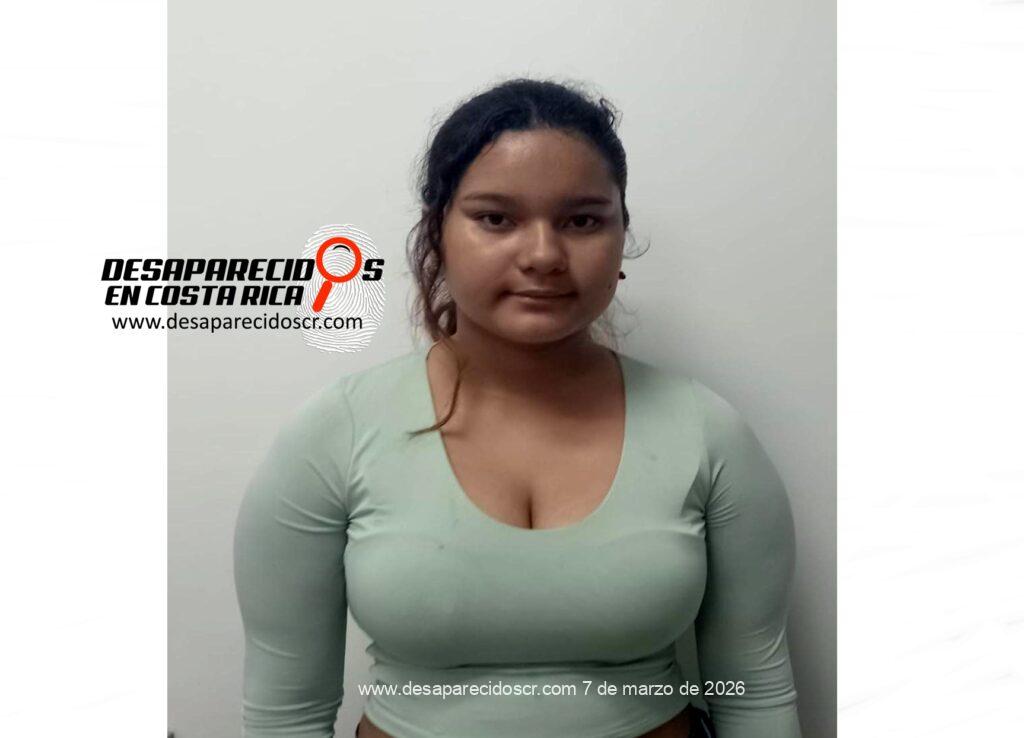 La Delegación Regional de Pérez Zeledón del Organismo de Investigación Judicial requiere la colaboración de la ciudadanía para ubicar a ESNAYELI AMAYA CORTÉS, de 13 años, quien fue reportada como No localizada el 5 de marzo de 2026. Fue vista por última vez en San José, Pérez Zeledón, el 5 de marzo de 2026. Cualquier información que pueda brindar es indispensable que se comunique al teléfono 800-8000645 o al WhatsApp 8800-0645 del Centro de Información Confidencial.
