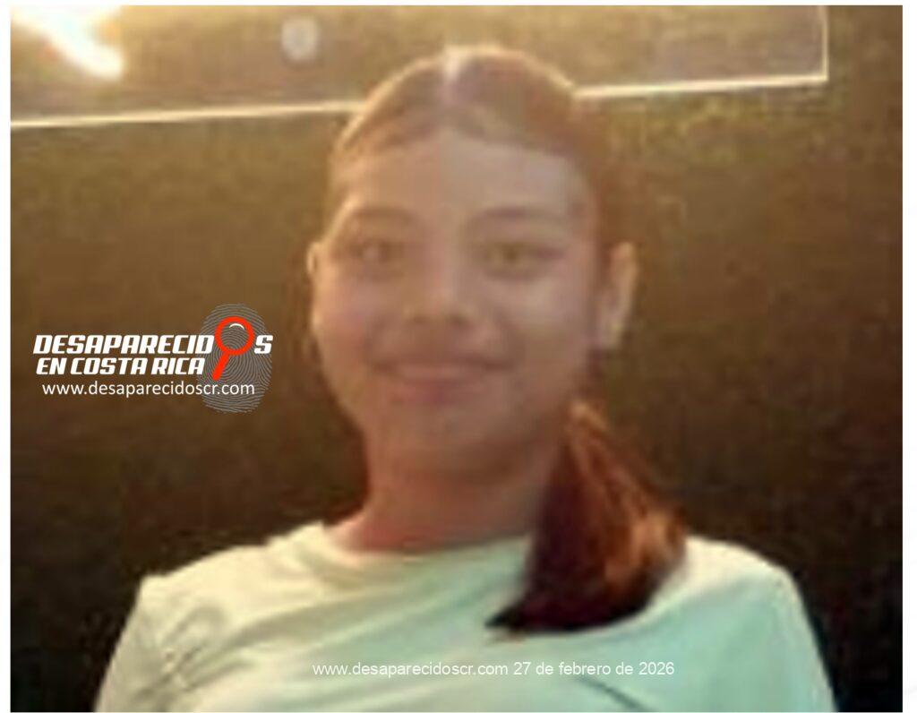 La Subdelegación Regional de Siquirres del Organismo de Investigación Judicial requiere la colaboración de la ciudadanía para ubicar a NADIA ALEXANDRA OSORIO DIAZ, de 13 años, quien fue reportada como desaparecida el 27 de febrero de 2026, fue vista por última vez en Limón, Siquirres, el 19 de febrero de 2026. Cualquier información que pueda brindar es indispensable que se comunique al teléfono 800-8000645 o al WhatsApp 8800-0645 del Centro de Información Confidencial.