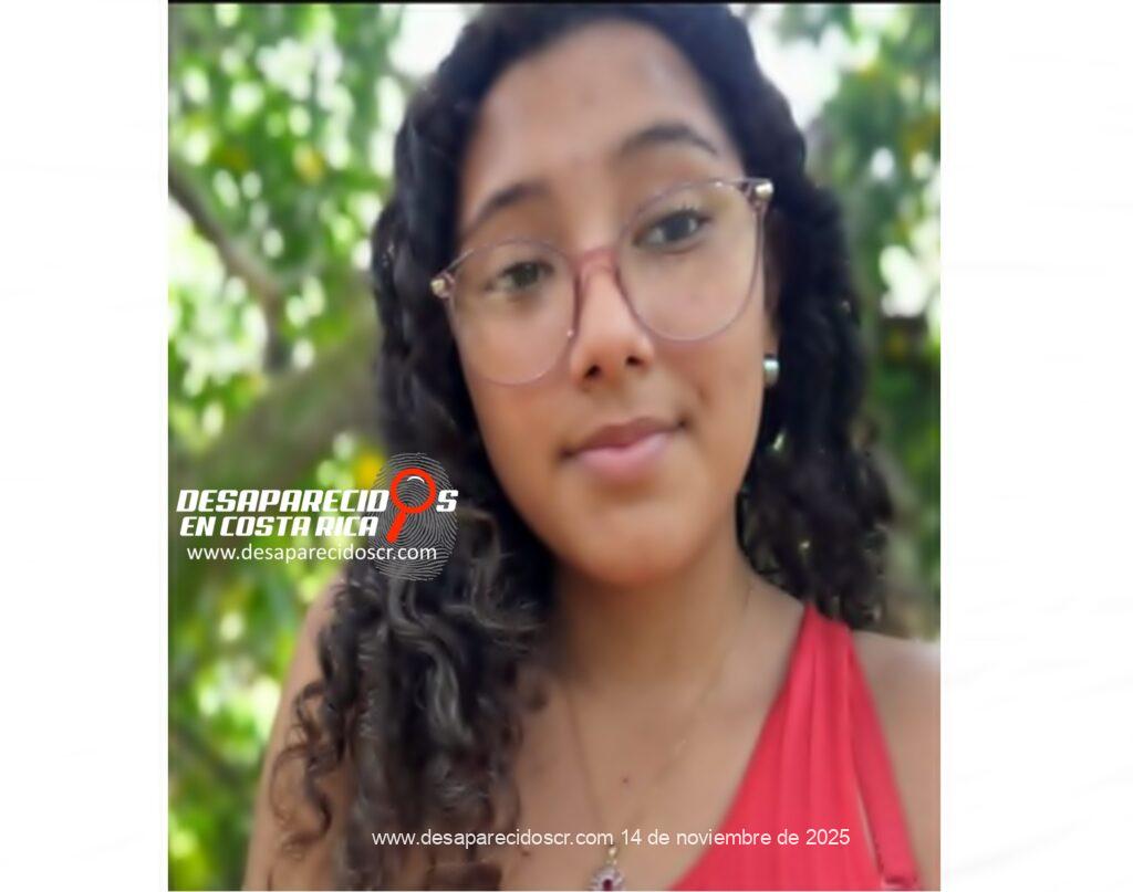 Menor de 14 años fue reportada como desaparecida el 12 de noviembre , fue vista por última vez en Puntarenas, Coto Brus, San Vito, el 11 de noviembre