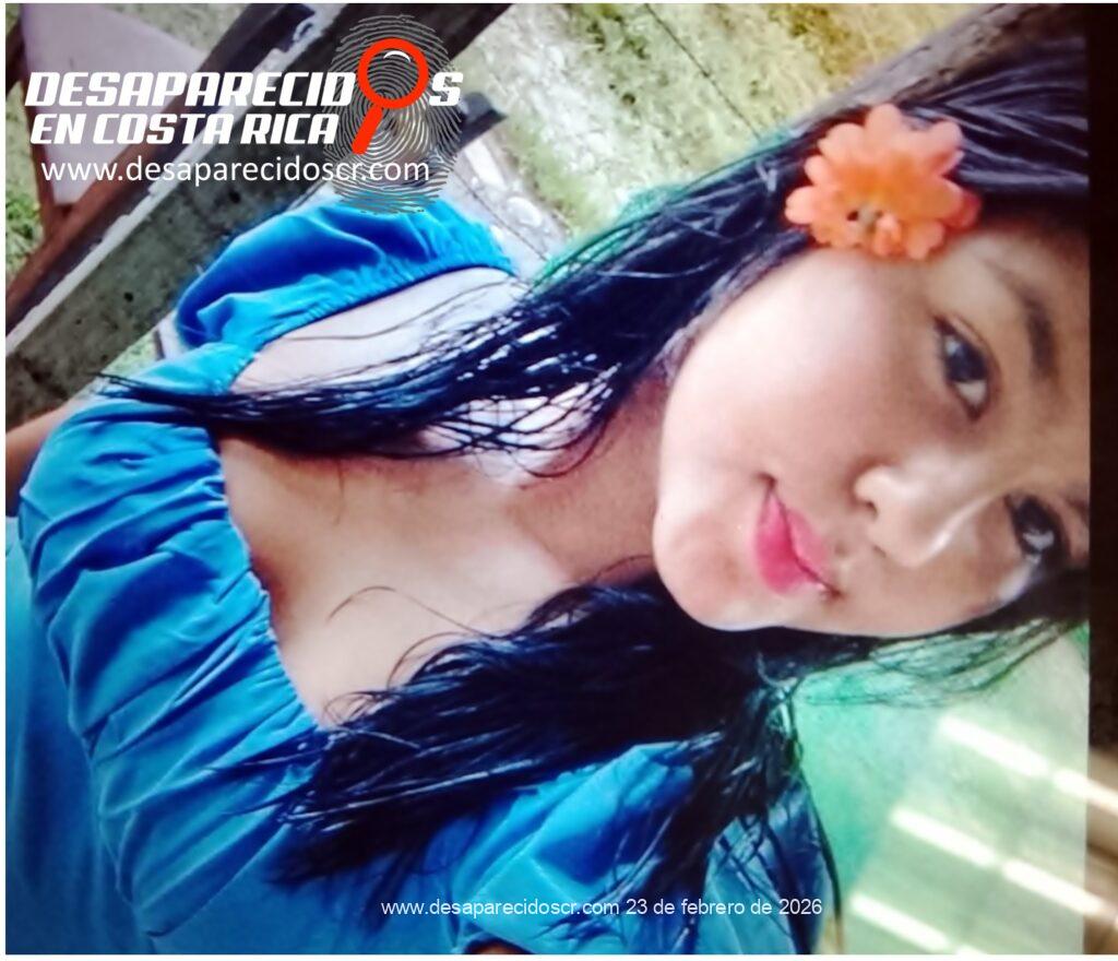 La Subdelegación Regional de Sarapiquí del Organismo de Investigación Judicial requiere la colaboración de la ciudadanía para ubicar a ROCHELY YANNETHE MOLINA AGUILAR, de 14 años, quien fue reportada como desaparecida el 23 de febrero de 2026, fue vista por última vez en Heredia, Sarapiquí, Horquetas, el 22 de febrero de 2026. Cualquier información que pueda brindar es indispensable que se comunique al teléfono 800-8000645 o al WhatsApp 8800-0645 del Centro de Información Confidencial.