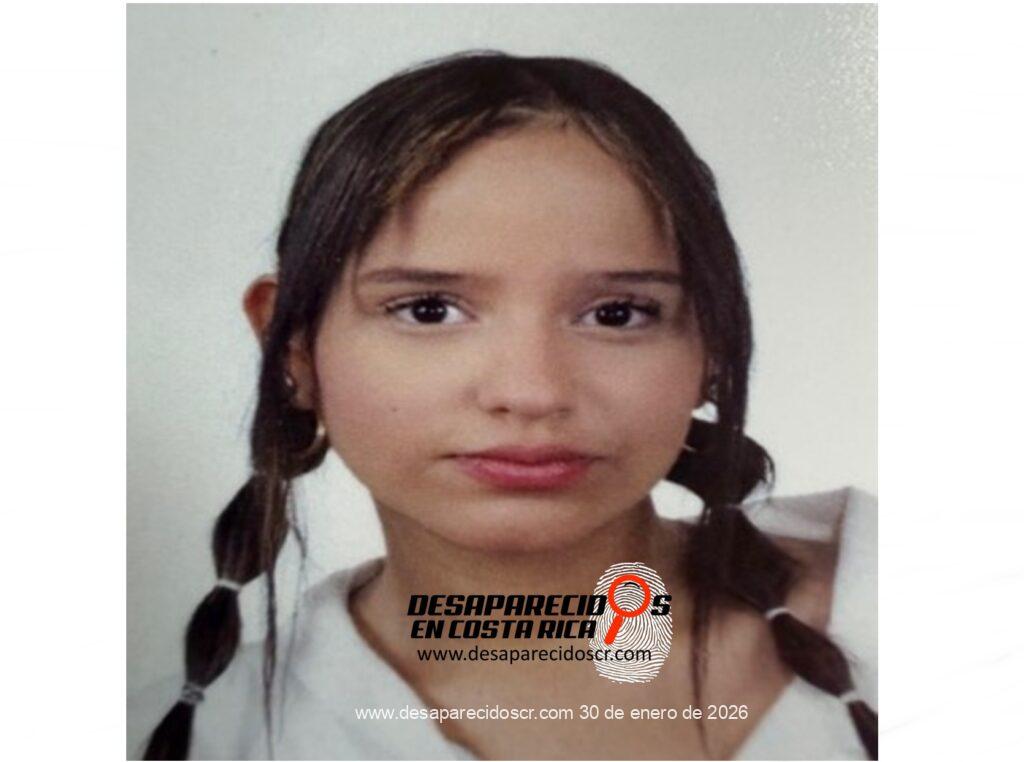 La Sección de Delitos Varios del Organismo de Investigación Judicial requiere la colaboración de la ciudadanía para ubicar a NOELIA MARÍA CORDERO VARGAS, de 14 años, quien fue reportada como desaparecida el 30 de enero de 2026, fue vista por última vez en San José, Desamparados, Damas, Fátima, el 30 de enero de 2026. Cualquier información que pueda brindar es indispensable que se comunique al teléfono 800-8000645 o al WhatsApp 8800-0645 del Centro de Información Confidencial.