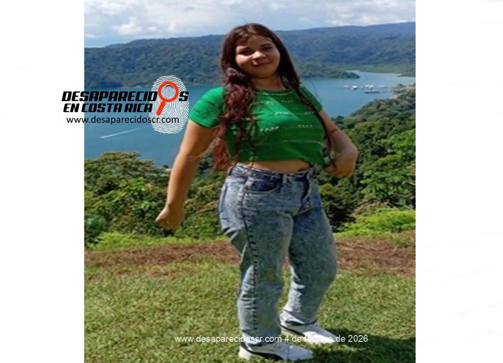 La Delegación Regional de Corredores del Organismo de Investigación Judicial requiere la colaboración de la ciudadanía para ubicar a BRITHNEY PAMELA SOLERA PÉREZ, de 15 años, quien fue reportada como desaparecida el 04 de febrero de 2026, fue vista por última vez en Puntarenas, Corredores, el 03 de febrero de 2026. Cualquier información que pueda brindar es indispensable que se comunique al teléfono 800-8000645 o al WhatsApp 8800-0645 del Centro de Información Confidencial.