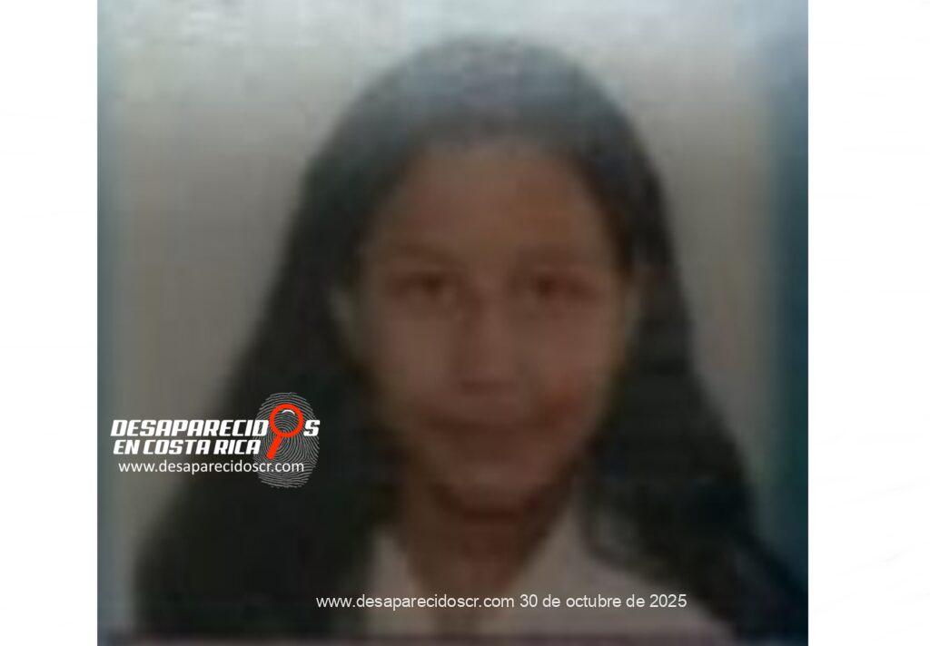 Menor de 15 años fue reportada como desaparecida el 24 de octubre de 2025, fue vista por última vez en Alajuela, Upala, el 22 de octubre