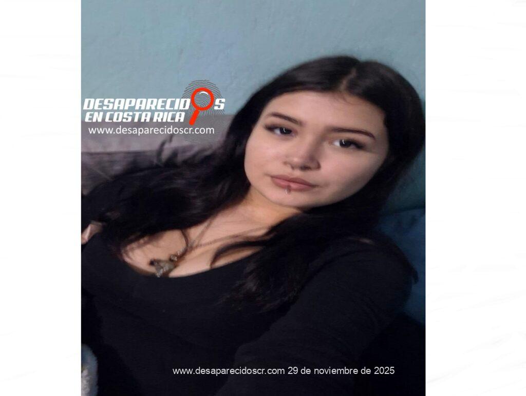 La Delegación Regional de Alajuela del Organismo de Investigación Judicial requiere la colaboración de la ciudadanía para ubicar a Kristine Mariela Zúñiga Camacho, de 15 años, quien fue reportada como desaparecida el 29 de noviembre de 2025, fue vista por última vez en Alajuela, Río Segundo, el 28 de noviembre de 2025. Cualquier información que pueda brindar es indispensable que se comunique al teléfono 800-8000645 o al WhatsApp 8800-0645 del Centro de Información Confidencial.