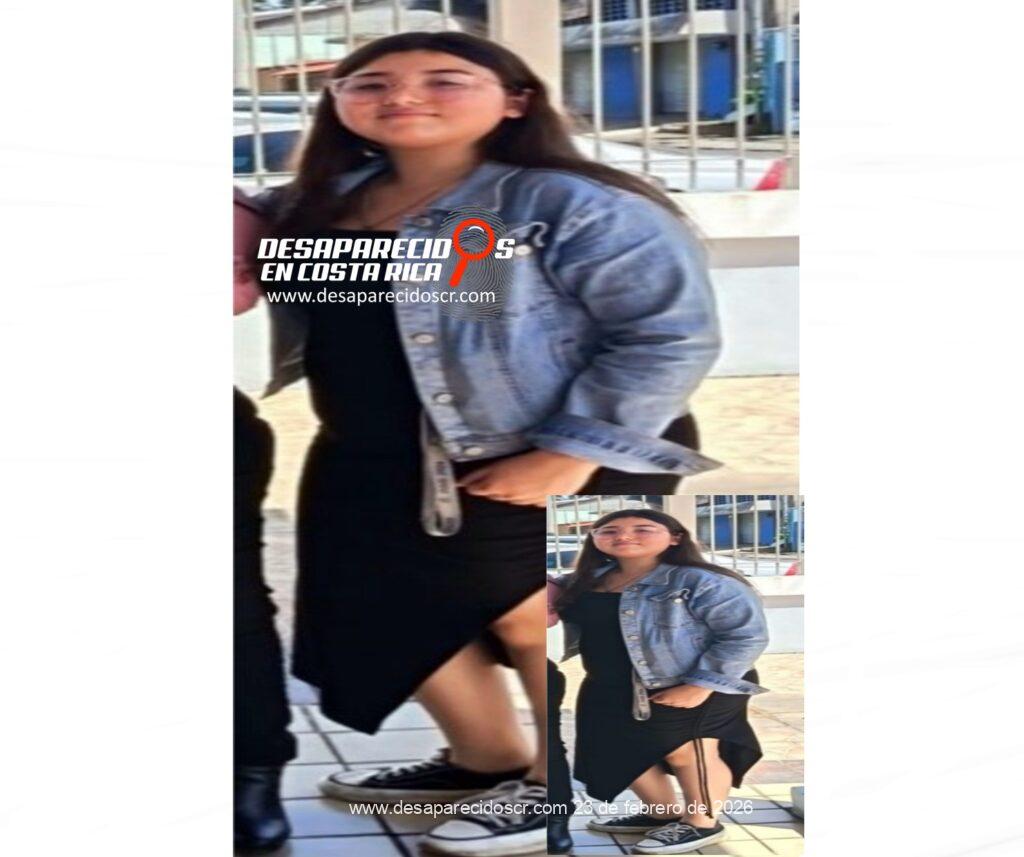 Menor de 16 años  fue reportada como desaparecida el 18 de febrero , fue vista por última vez en San José, San José, Hospital, Barrio Cuba