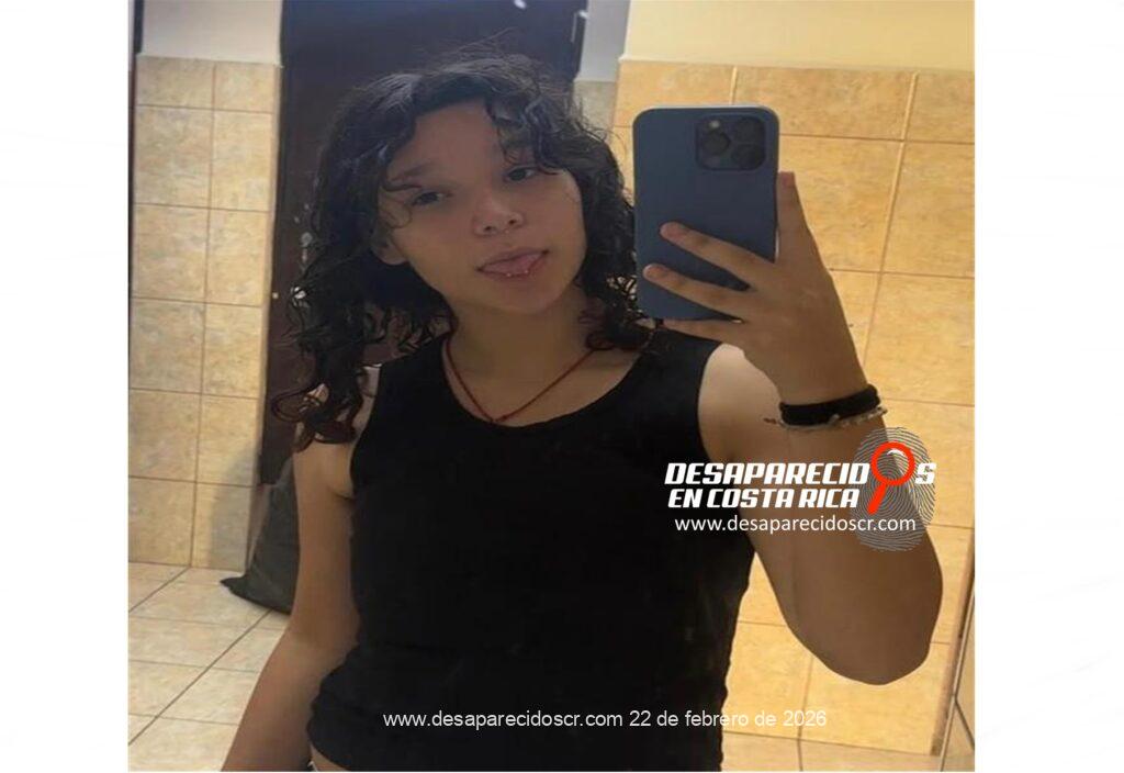La Sección de Inspecciones Oculares Y Recolección De Indicios del Organismo de Investigación Judicial requiere la colaboración de la ciudadanía para ubicar a YARMEIR SOFÍA UREÑA MÉNDEZ, de 16 años, quien fue reportada como DESAPARECIDA el 22 de febrero de 2026. Fue vista por última vez en San José, Alajuelita, el 21 de febrero de 2026. Cualquier información que pueda brindar es indispensable que se comunique al teléfono 800-8000645 o al WhatsApp 8800-0645 del Centro de Información Confidencial.