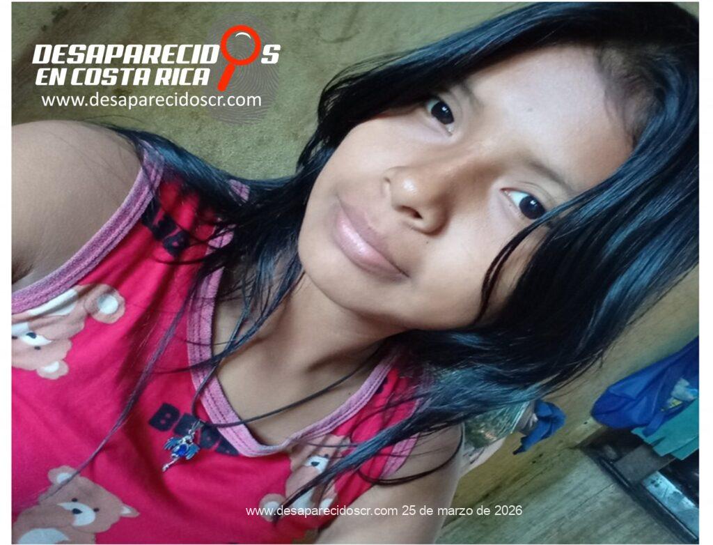 Menor de 16 años fue reportada como desaparecida el 25 de marzo, fue vista por última vez en Limón, Talamanca, Bratsi, el 21 de marzo