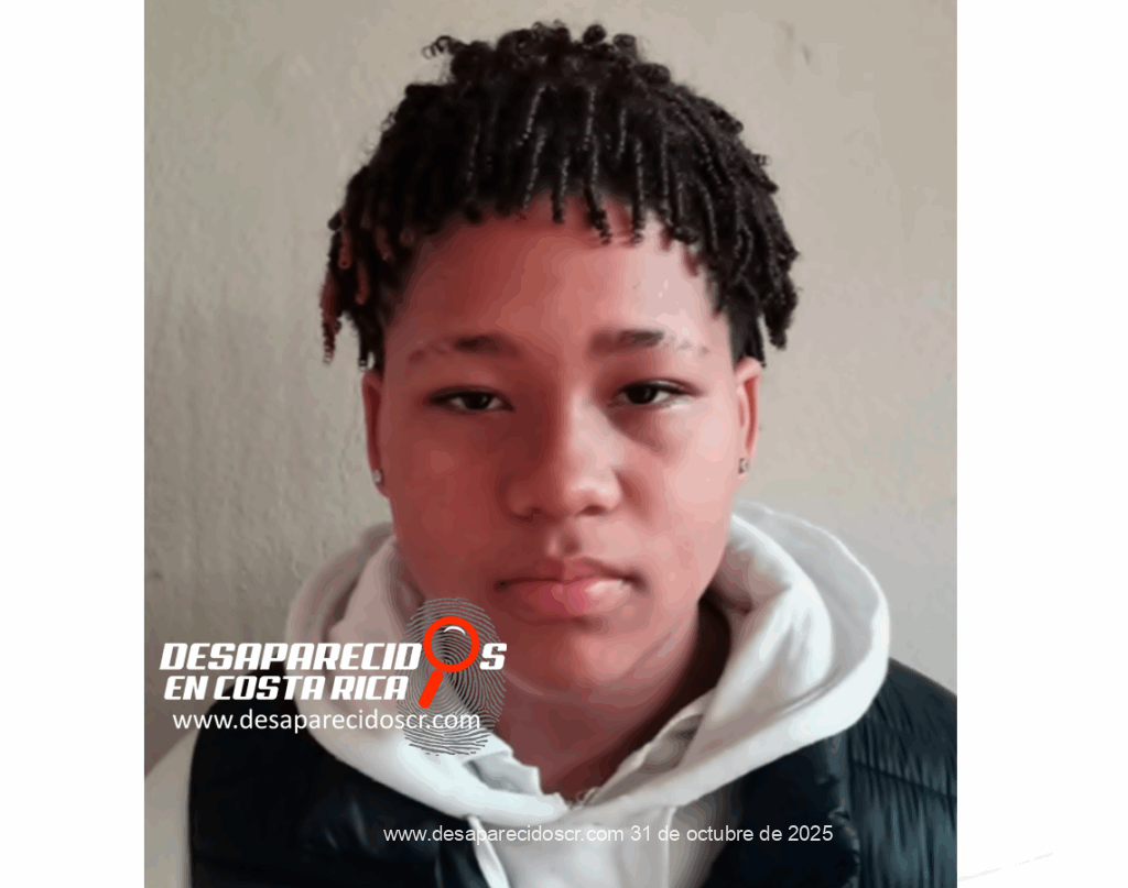 La Sección de Delitos Varios del Organismo de Investigación Judicial requiere la colaboración de la ciudadanía para ubicar a ASHLEY SHAREY SAWYERS FURTADO, de 14 años, quien fue reportada como desaparecida el 30 de octubre de 2025, fue vista por última vez en San José, Polideportivo Aranjuez, el 30 de octubre de 2025. Cualquier información que pueda brindar es indispensable que se comunique al teléfono 800-8000645 o al WhatsApp 8800-0645 del Centro de Información Confidencial.